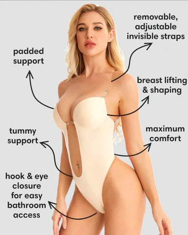 - Modelador Sem Costas: O Body com Decote Profundo em V Possui Design com Abertura na Virilha e 3 Fileiras de Botões Ajustáveis para Atender às Suas Necessidades.