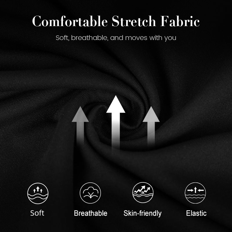 TECIDO ELÁSTICO E MACIO - Confeccionado em material de alta elasticidade e amigo da pele, que se move com você. Oferece conforto o dia todo sem sensação de aperto, garantindo que você fique e se sinta maravilhosa, seja dançando, sentando ou socializando.