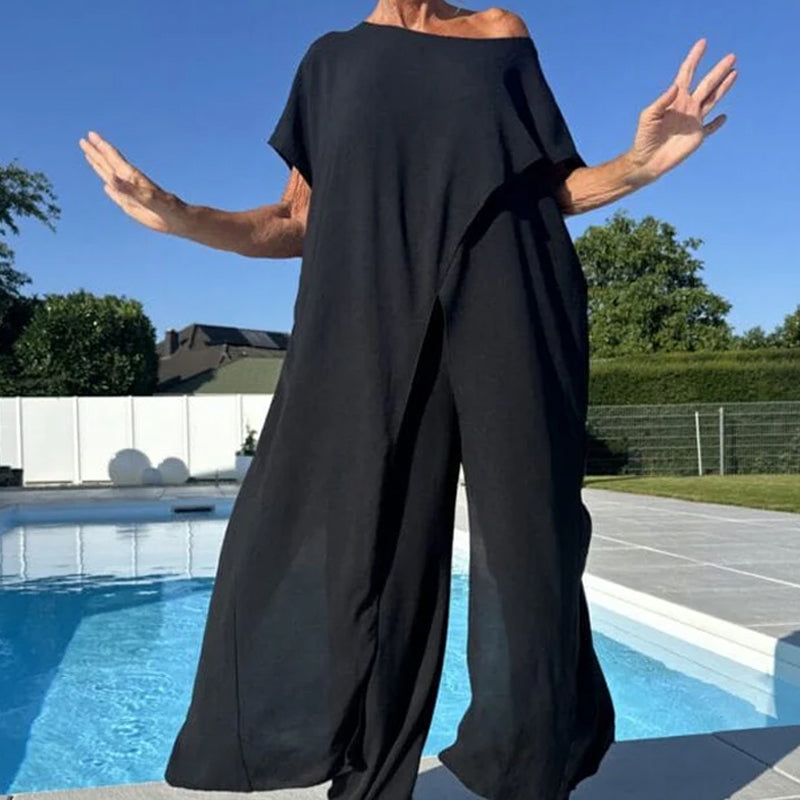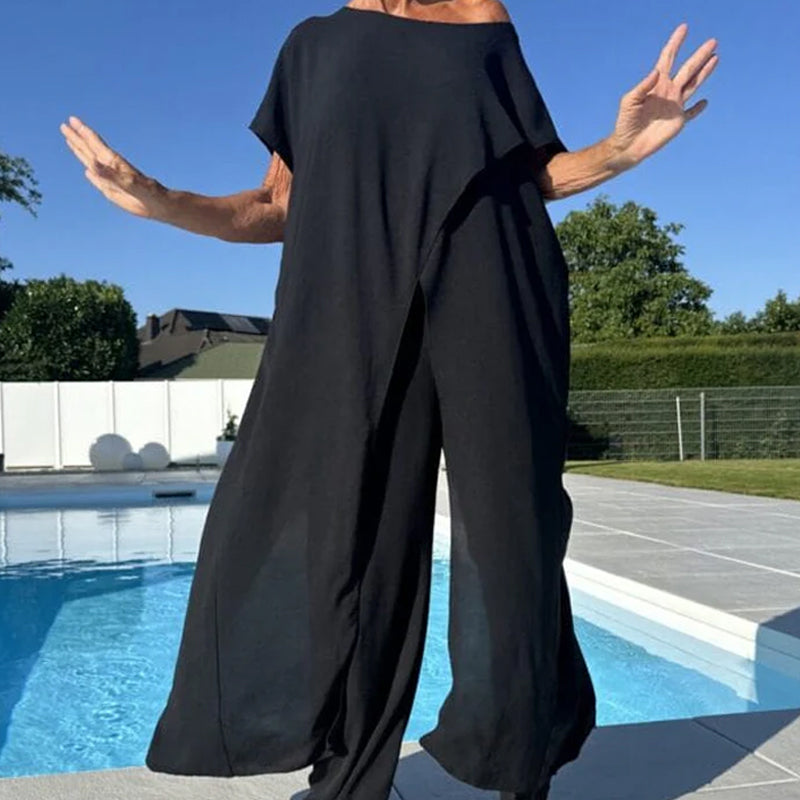 🌷 Conjunto de Top Sem Mangas (Off-Shoulder) e Calça de Cor Solida 👗