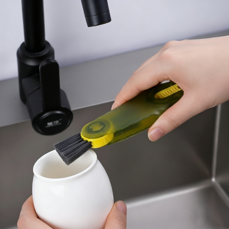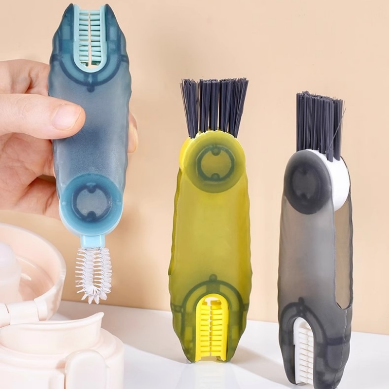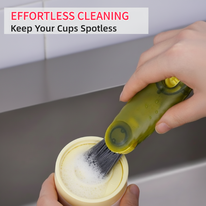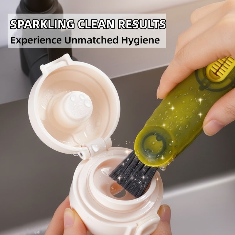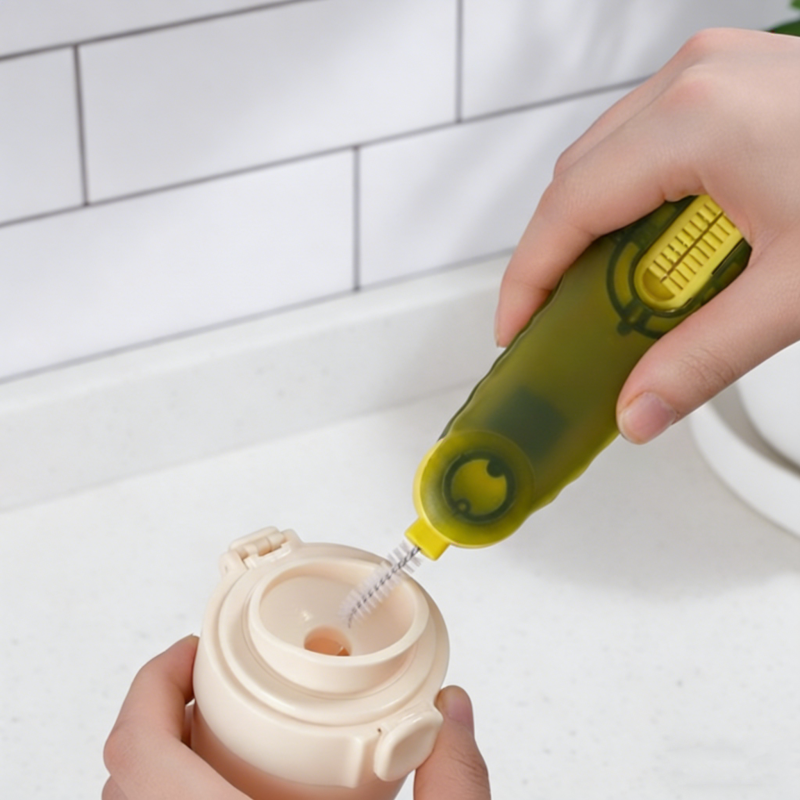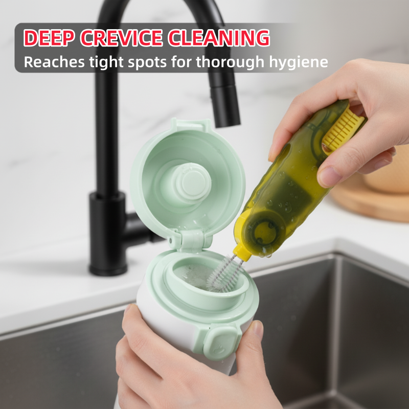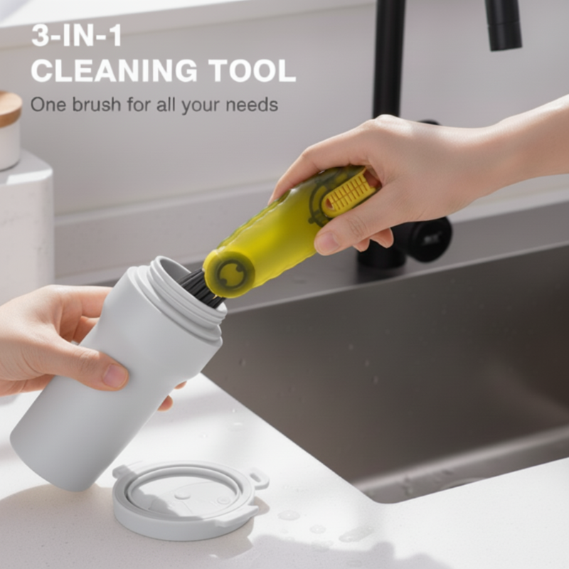 DESIGN VERSÁTIL 3 EM 1 - Combina três escovas únicas em uma ferramenta compacta, fornecendo a solução perfeita para limpar cada parte de seus copos, garrafas e tampas. Esta abordagem tudo-em-um economiza espaço na cozinha e maximiza a conveniência da limpeza.