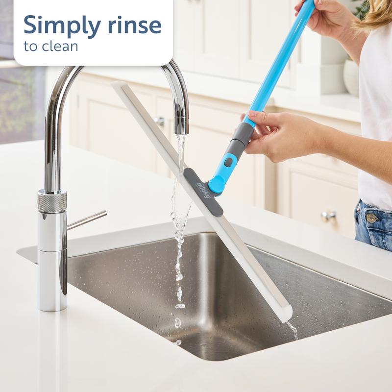 Não apenas varre, mas também raspa o box do chuveiro e janelas. Ferramenta de limpeza a seco e a úmido. Remove eficazmente poeira fina e detritos, respingos de líquidos (incluindo líquidos oleosos) e remove pelos de pets e humanos, areia, cacos de vidro e muito mais!