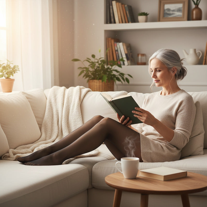 TECIDO COM BRILHO ÓLEO 8D - Oferece um brilho sutil e luminoso que reflete a luz de forma bela. Este acabamento único confere às suas pernas uma aparência lisa e polida, fazendo-as parecer mais longas, mais finas e irresistivelmente suaves ao toque.